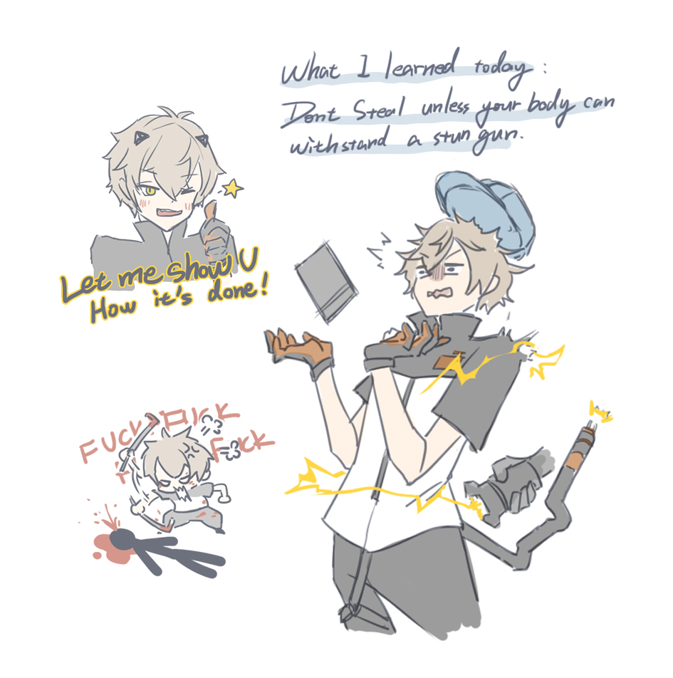 #AlbanKnoxArt sorry Alban sensei, I can't suffer from the stun gun, stealing is so hard, sadge
