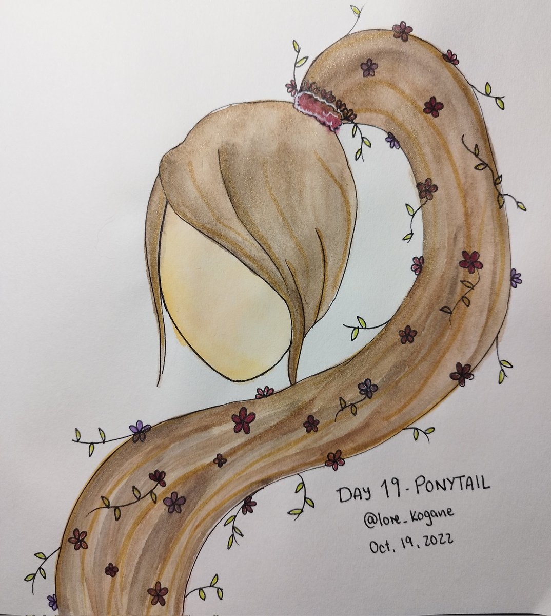 Inktober Day 19: Ponytail 💐 Luv using glitter ✨✨ #inktober2022 #inktober #Inktoberday19 #inktober2022ponytail #watercolors