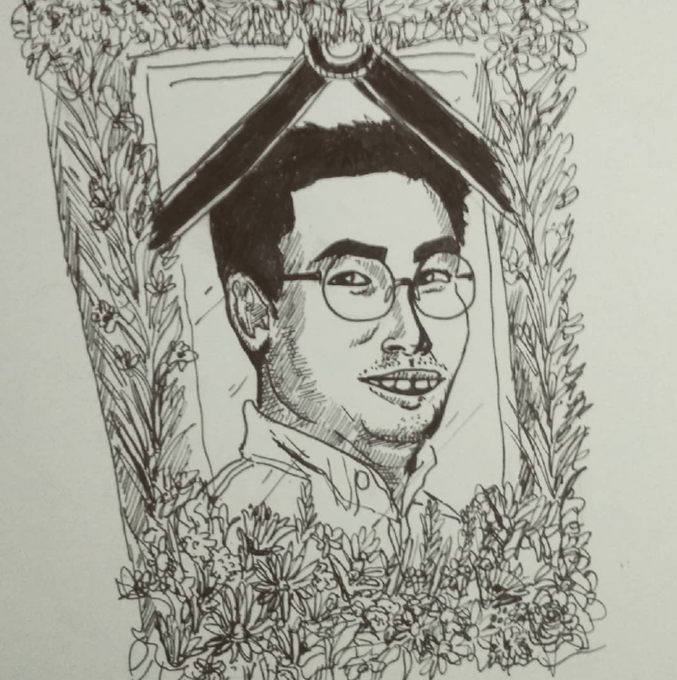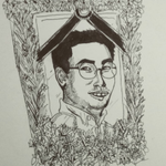 昨日(6日5月)三浦健太郎先生(いうまでもないと思うがベルセルクの漫画家でしたすごい人)の忌日だったんですけど去年弔って筆でこの絵描きました...三浦さんの絵がすごくていつも力になる尊い存在です。成仏の願いを捧げます