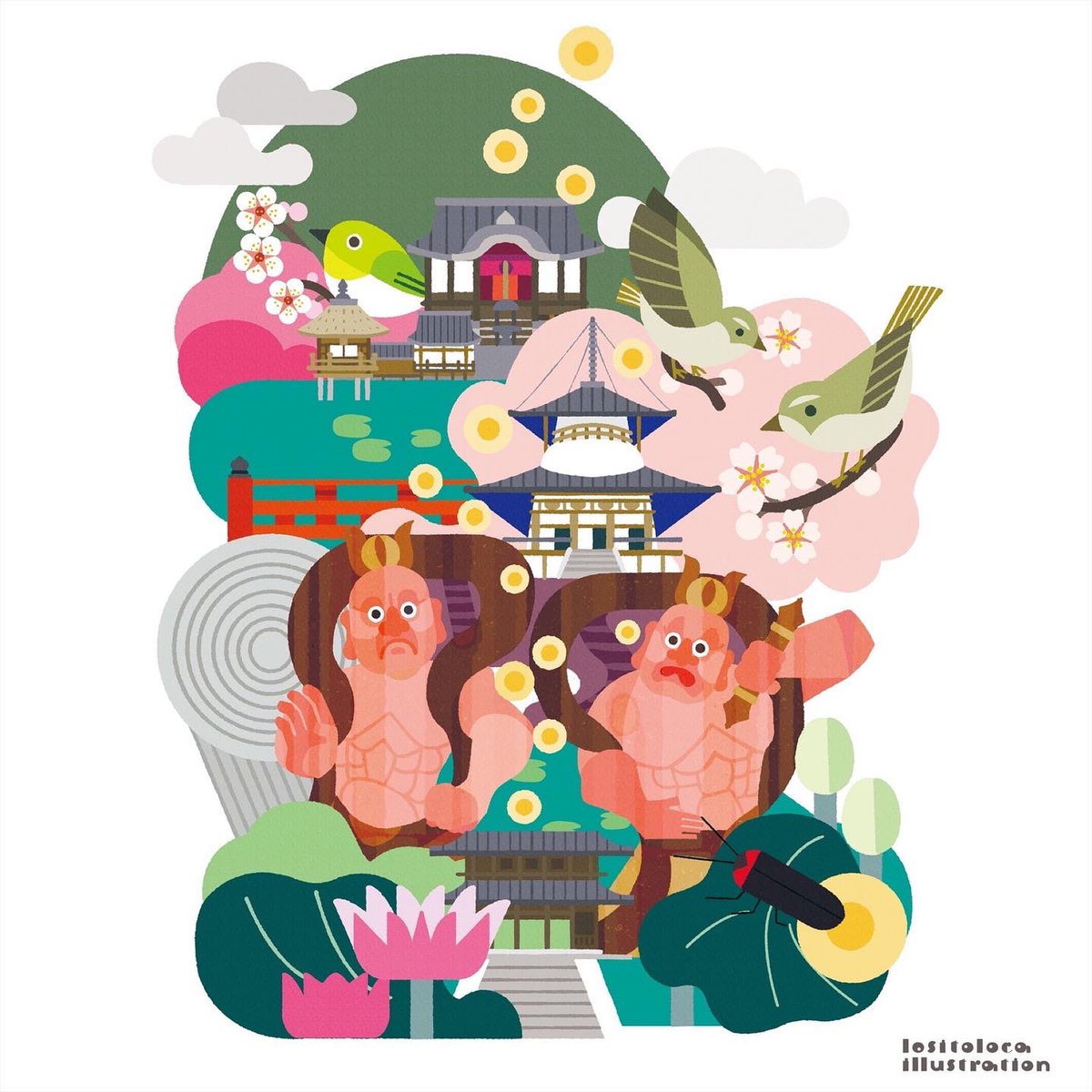 和歌山の「根来寺」をテーマにしたポスターです。自分たち夫婦が記憶に残る根来寺の四季をカラフルに描きました。 『NEGORO ART WALK 〜根來アート散歩〜』@negoroartwalk twitter.com/lositoloca/sta…