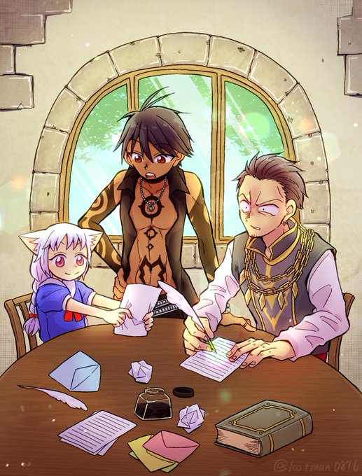 3 8 リアルイベントには間に合わなかったんですけどファンアート展に投稿しました~~二人ともアジトで両親に手紙書くって言ってるの可愛い #メギド72イラスト 19/06/03 20:46