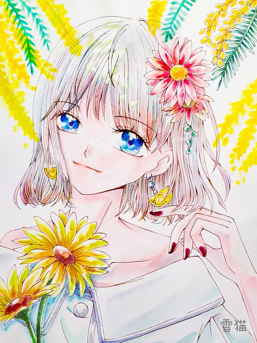 2 19 音翠アイラちゃん(@onsui_aira )演じるサイバーハニーのカレン・コネリーを描きました。 夏っぽく麦わら帽子と向日葵🌻 ネコミミの麦わら帽子って可愛いよね☺ #水彩画 #透明水彩 #麦わら帽子 #カレン・コネリー #サイバーハニー #サイハニ #音翠アイラ 22/05/17 12:33
