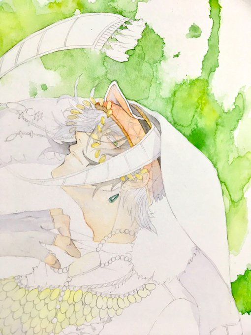 4 21 前回あげたやつの色塗り途中^ ^ #アナログ #透明水彩 #オリジナル #アナログイラスト #イラスト #制作途中 21/11/06 00:28
