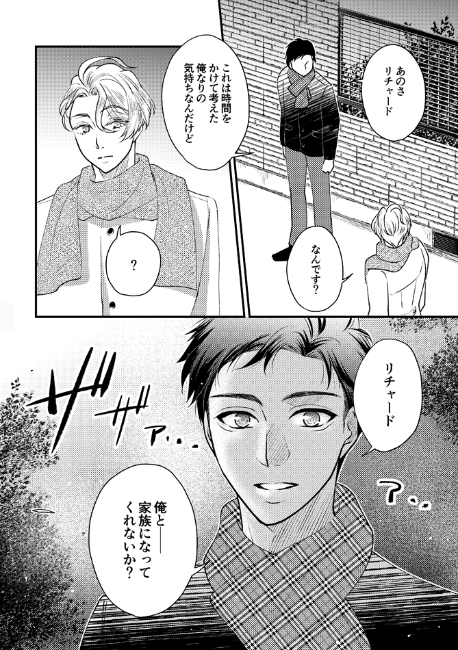 🌹12/11正リチャオンリー新刊サンプル②🌹 「アイノカタチ」 見ての通りのハッピーウェディング🤵🤵♂️なプロポーズ正リチャ本。Twitterで上げていたショート漫画も再録。通販はイベント残部を発送予定です。 pixiv.net/artworks/10311…