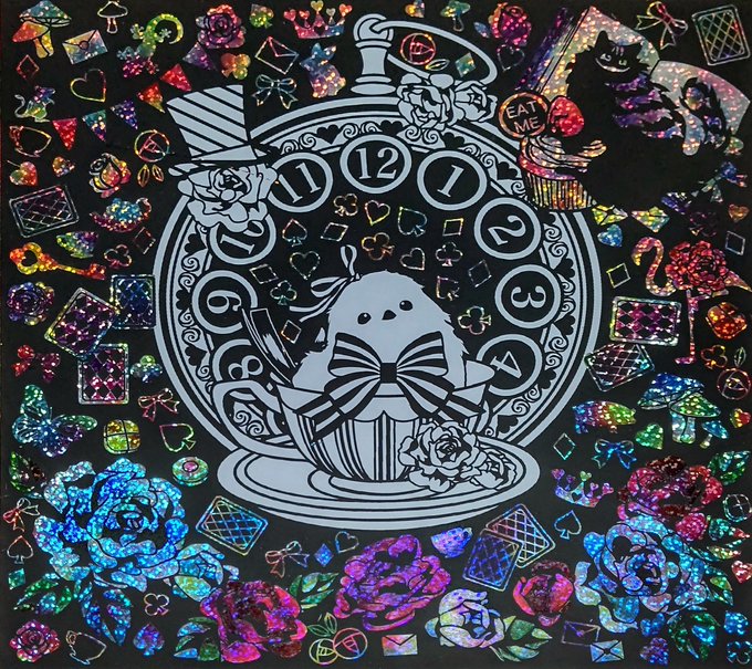 かなり雑な仕上がりだけど、なんかもうこれで完成でいいや 削り方迷子になったし、削りカスがペンと紙に纏わり付いてキレイに払えないし、けっこうイラっとしながらのカリカリでした 色はキレイなんだけどなぁ 残念なシートだ #スクラッチアート #幻想スクラッチアート