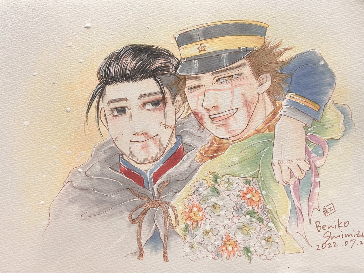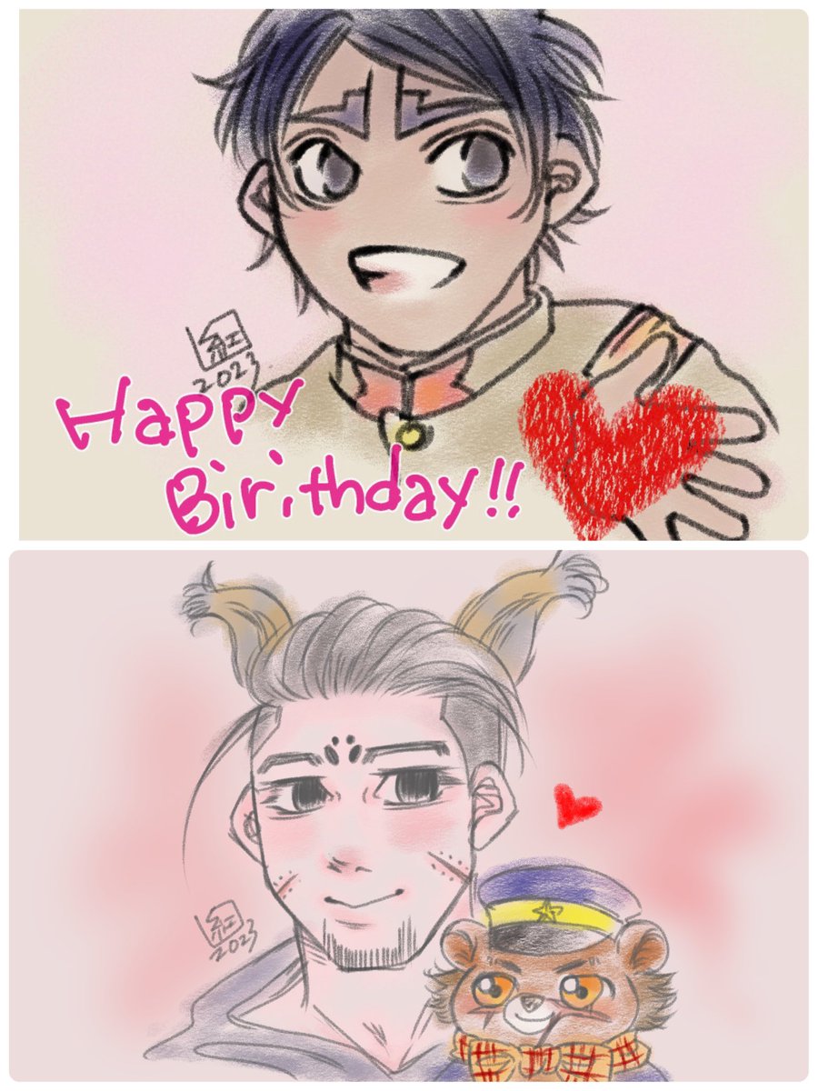 #杉元佐一誕生祭2023 #杉元佐一生誕祭2023 強くて優しい貴方が大好きです! また今年もお祝い出来たのが嬉しくて、初めて杉誕をお祝いした去年のアナログ絵をデジタルでセルフリメイクしました。 デジ絵デビュー1年未満の長期ブランク有りアナログ絵描きですが、大好きな金カムお絵描き楽しいです😊 twitter.com/lovechang0122/…