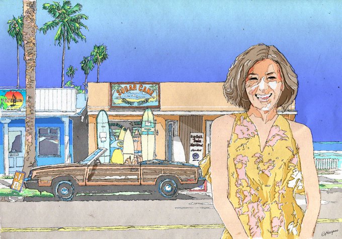 古い絵です♡ では、いってきます。 今日も素敵な一日になりますように💙🌴🌺 大瀧詠一 - ペパーミント・ブルー youtu.be/ZYntyolStQs #過去絵を投げて絵を描いた気になろうキャンペーン