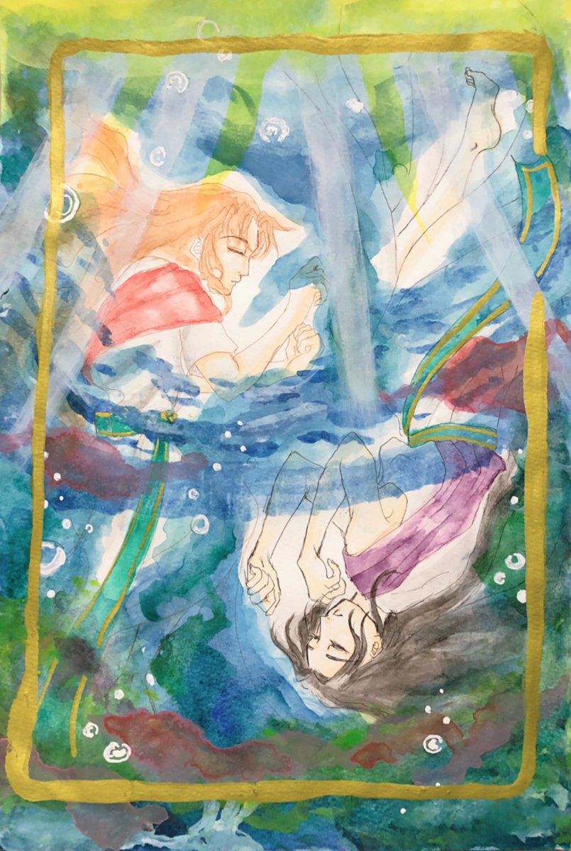 8 38 #縁巌深夜の発表会 お題『海』お借りします 母胎という海でふたりは元々ひとつだった 産み落とされふたりとなった ふたりは個々の人格を持った この世に生まれ落ちたがゆえに… #アナログ #水彩画 21/07/18 20:10