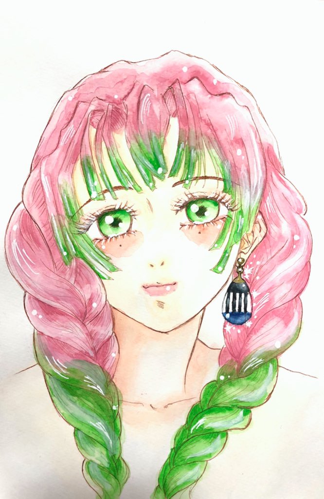2 12 再掲 塗り忘れが諸々あったので修正して再アップしました💦 初描き蜜璃ちゃん💖 『彼を見つめる彼女のまなざし』 後で小芭内くんver.も描く予定… #アナログ #水彩画 #蜜璃 21/07/25 22:57