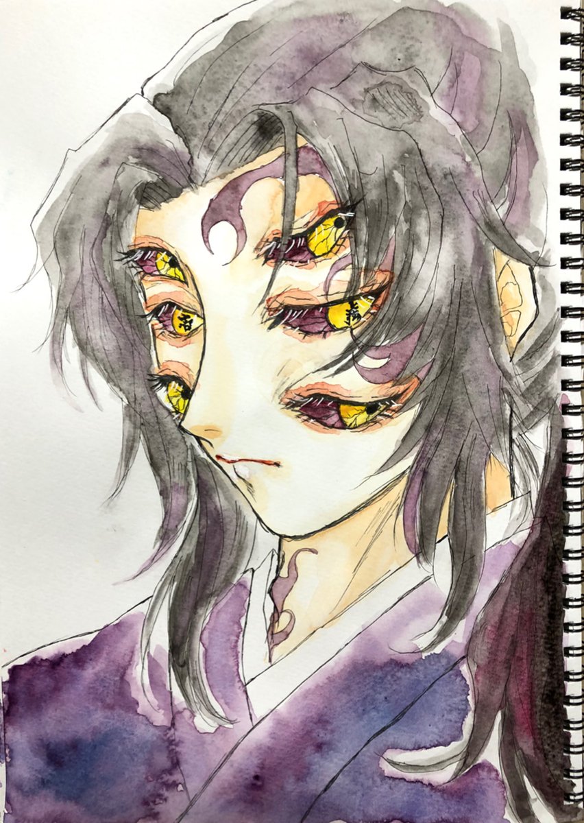 4 26 『因果の亡霊』 お盆前に下描きしていた絵をやっと塗り終えしました お盆中に山岸i凉子先生の短編集を読みふけっていたのでちょっと影響受けてます #鬼滅の刃 #黒死牟 #ファンアート #アナログ #水彩画 21/08/17 22:22