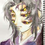 7 21 初めて顔彩と木炭鉛筆を使用して描きました 『虚ろ』 #鬼滅の刃 #継国巌勝 #ファンアート #アナログ #水彩画 21/09/05 20:00