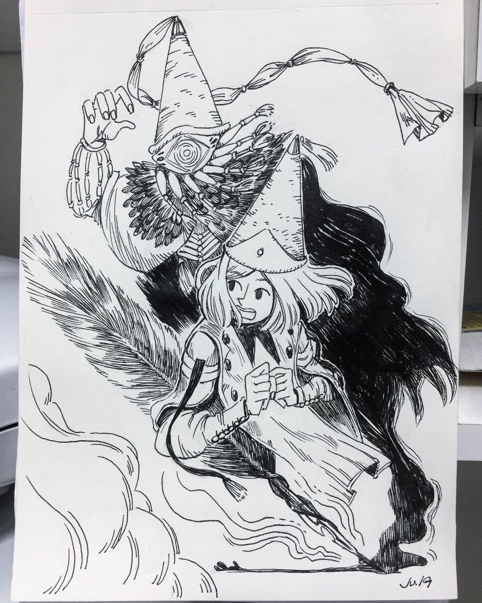 Coco and witch with the lidless eye hat - Iguin ❤️ A5 , ink & canson paper. #tbt #witchhatatelier #Δ帽子