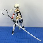やっと全体的にの表面処理と塗装準備は完了しました!(2度目草w) そして武装の正式名称も決めました 塗装は来週予定 白刃戦闘専用試作メガミデバイス「椨(タブノキ)」 と 試製戦術武装「二二式荷電粒子加速居合戦術刀改・甕速火(ミカハヤヒ)」 #メガミデバイス