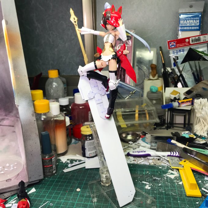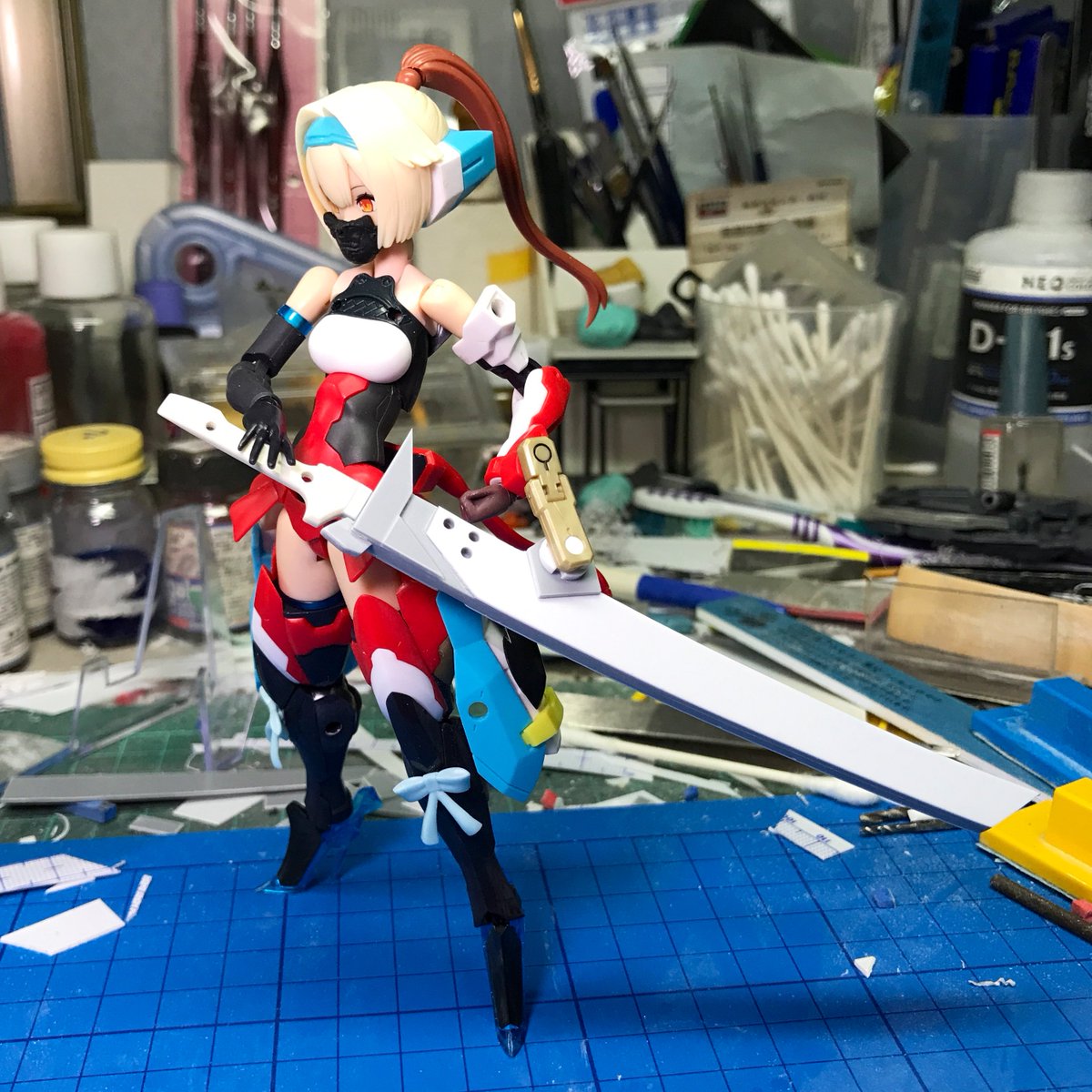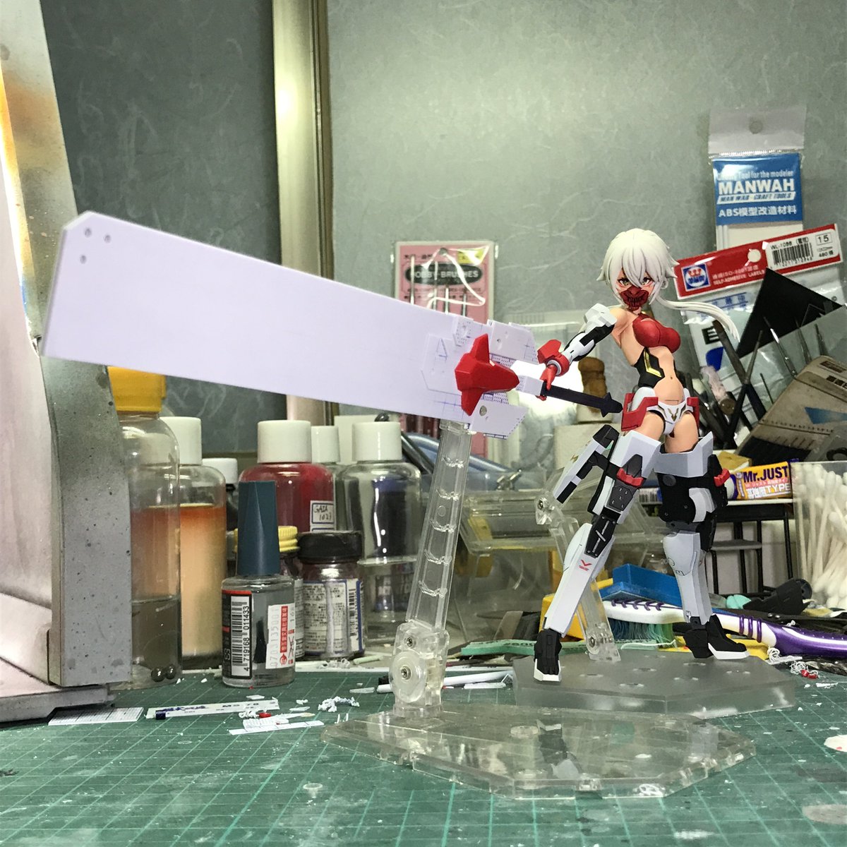 進捗 でか武器大好き❤wwwww ちなみに今回の武装は 二二式高爆戰術破城大剣「迦具土(カグツチ)」 #メガミデバイス