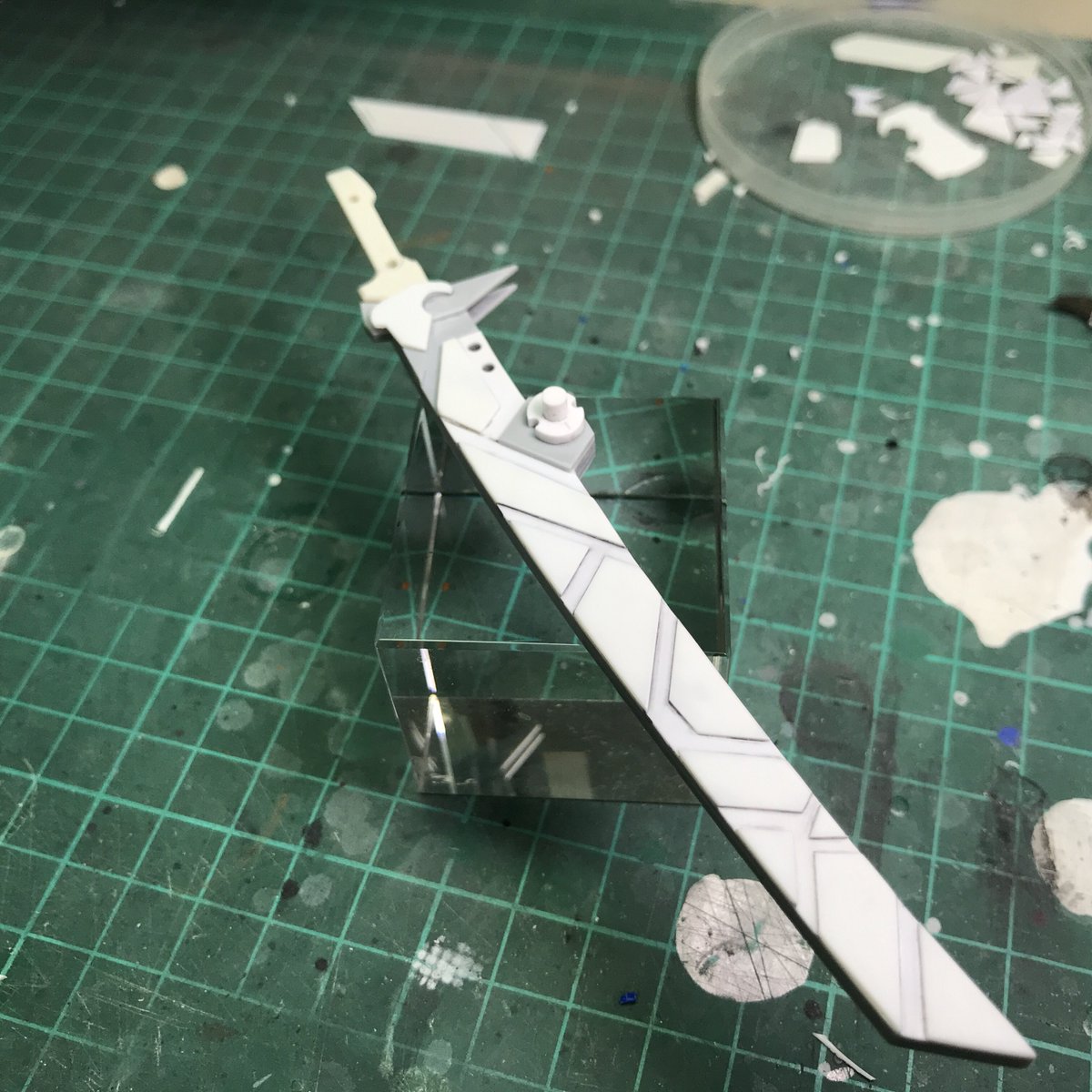 進捗ツイート 試製武装:二二式荷電粒子戦術刀改・樋速火(ヒハヤヒ) そして先行量産型の......?(後日公開) #メガミデバイス