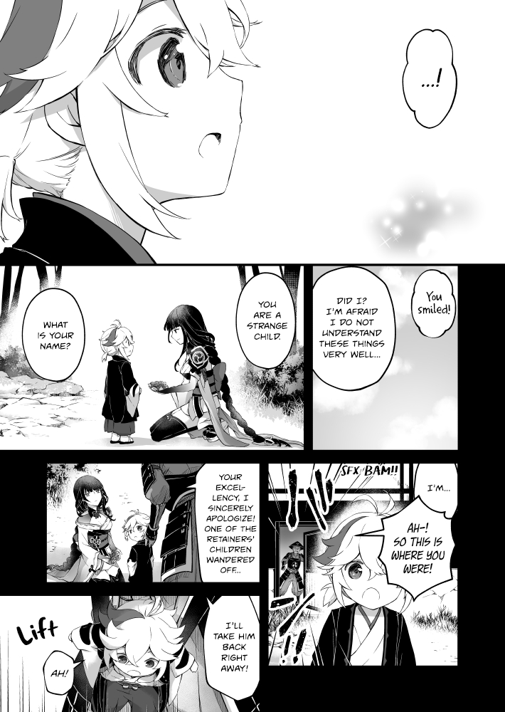 here's an english translation of Banchi-san's (@banjin03) amazing manga, taking place after the events that transpired in Inazuma. thank you very much for allowing me to translate this! ✨ #chilumi #タル蛍 twitter.com/banjin03/statu…