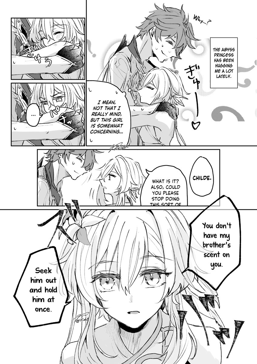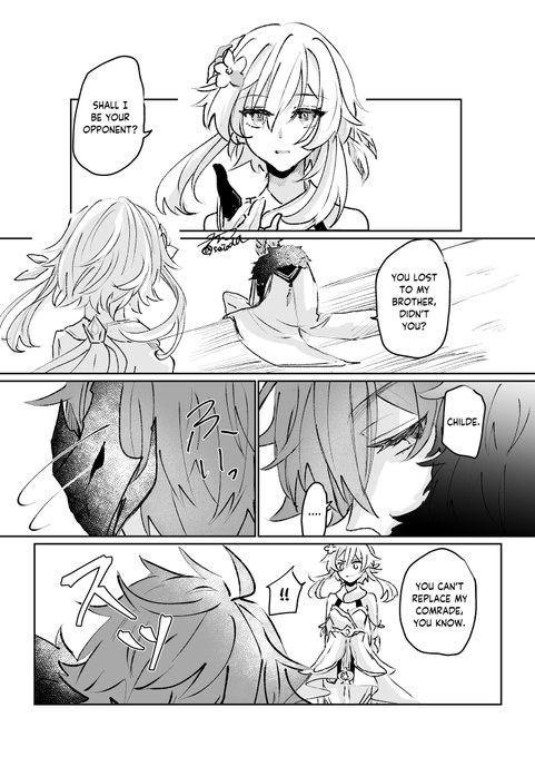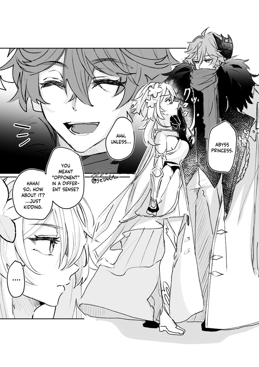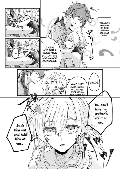 「the abyss princess and the fatui noble」 here's an english translation of this what-if scenario between abyss princess!lumine and childe! ✨ many thanks to @seiaddさん for allowing me to translate this beautiful manga! 💕 please show some support to the artist~ #chilumi #タル蛍 twitter.com/seiadd/status/…