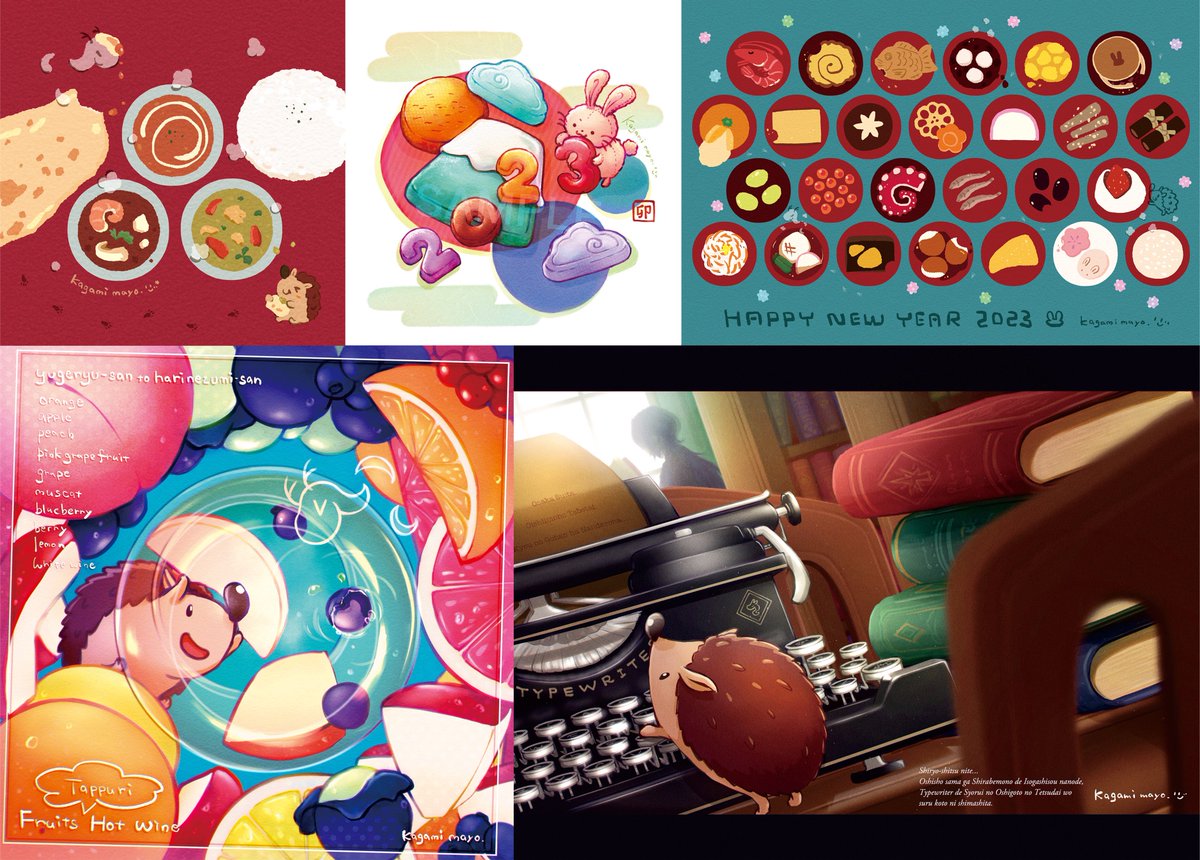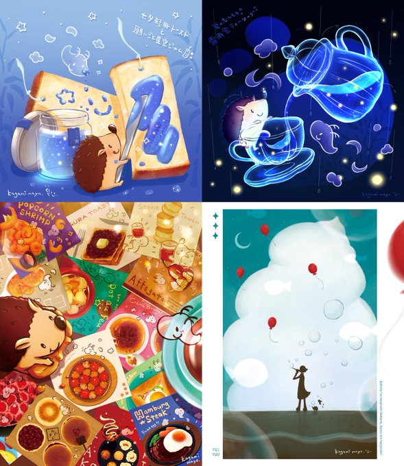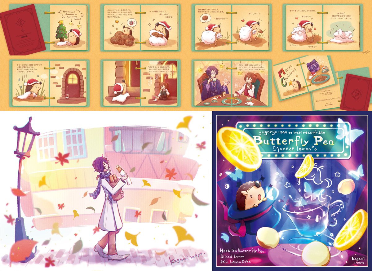 【11月に描いた絵 まとめ】 絵本と青いお茶とお散歩📕🫖🦋🍁🥖 はりねずみさんたくさん描きました☺︎ #絵 #イラスト #創作 #illustration #みんなで楽しむTwitter展覧会