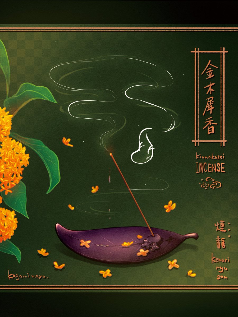 金木犀のお香と煙龍さん🏵💭✨ 湯気龍さんのお友達の煙龍さんです!☺︎ (金木犀イラスト2) #絵 #イラスト #創作 #illustration #みんなで楽しむTwitter展覧会 #金木犀