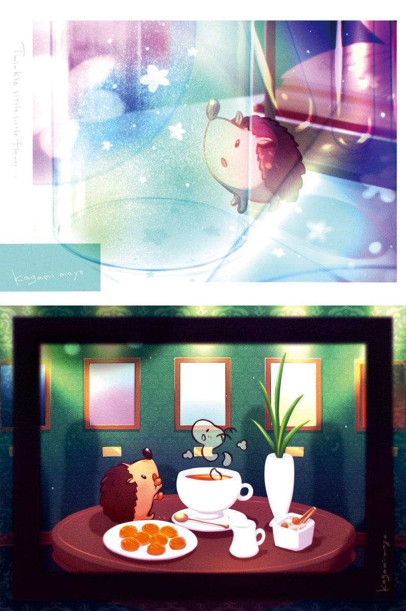 見習い魔法使いさんと 湯気龍さんと はりねずみさんの 『金木犀お茶会🏵✨』 金木犀のお茶と、 金木犀ジャムがけドーナツ☺︎🌼🫖 (金木犀イラスト3) #絵 #イラスト #創作 #illustration #みんなで楽しむTwitter展覧会 #金木犀