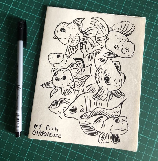 Premier jour de mon #Inktober « Fish » Entraînement au #Sketch rapide et sans crayon, foncé direct avec un feutre pour ne pas utiliser de gomme 👌 (On jugera pas l’erreur en bas de la page 🤫) #inktober2020