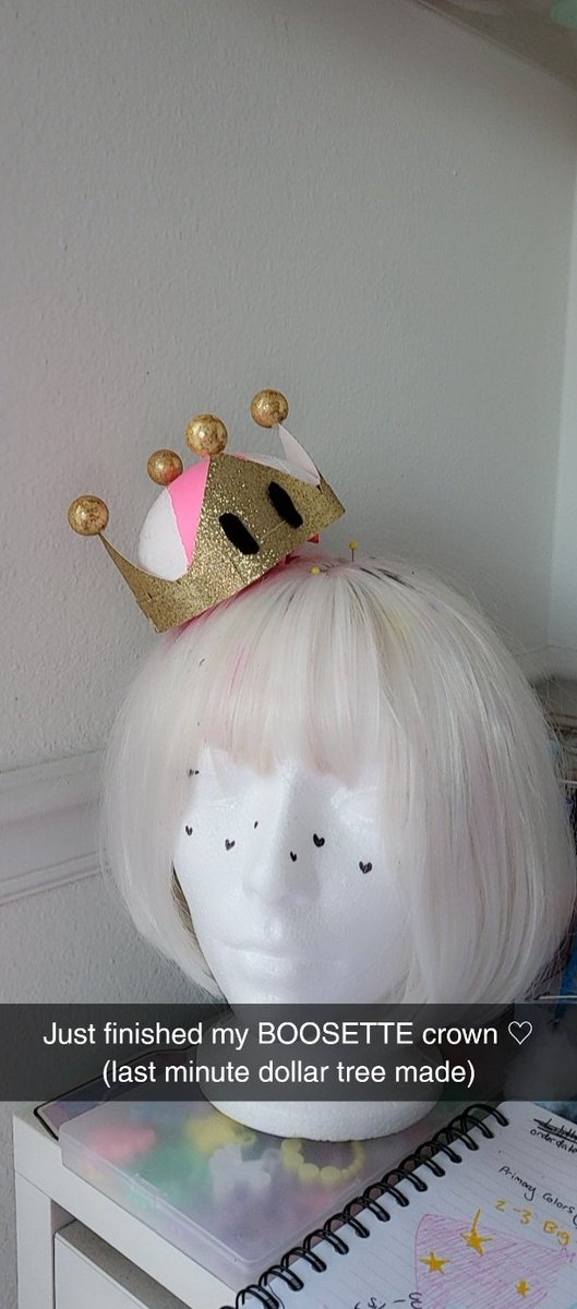 Last minute DIY on Boosettes SUPER CROWN ♡ only costs $3 hehe #boosette #cosplay #DIY