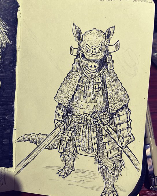 Inktober Day 15 - Armadillo #inktober #inktober2022 #inktoberday15 #inkdrawing #drawing #sketch #sketchbook #armadillo #samurai