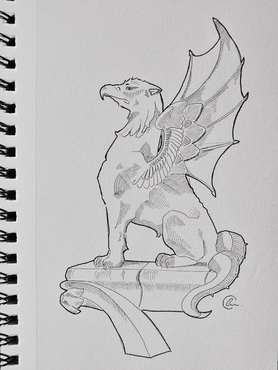 Day 1: #Gargoyle I'll be uploading everyday, so stay tuned!! (I forgot to post it yesterday ':)) #Inktober #inktober2022 #Inktoberday1 #ink #drawingchallenge #October