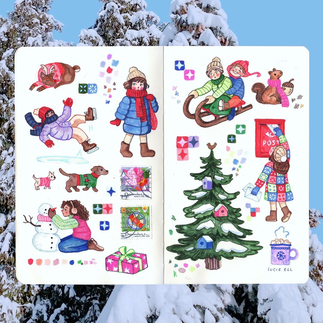 23 160 Winter activities sketchbook spread ❄️ 23/01/09 23:27