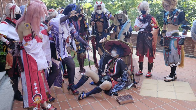 RIP Signora By your faithful💕 ✌️colleagues ✌️ #Genshinlmpact #cosplay #childe #fatuiharbingers #scaramouche #lasignora #ThatIsSignorasGravestone #tartaglia #genshinmemes