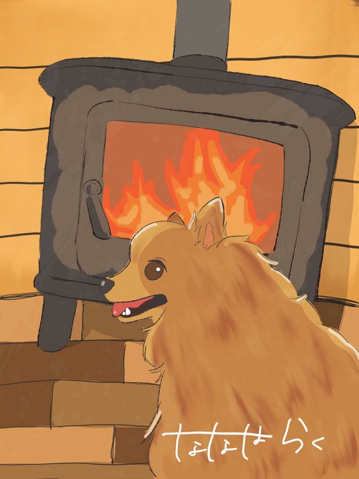 3 42 冬の特等席 #イラスト #イラスト好きさんと繋がりたい #薪ストーブ #犬 #ポメラニアン #チワワ #犬のいる暮らし 22/02/02 20:39