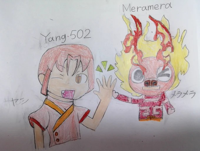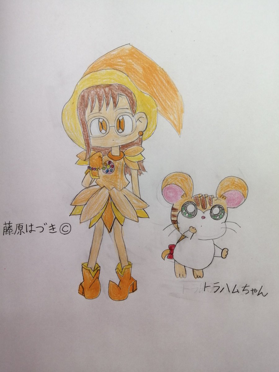 #今月描いた絵を晒そう ①ヤンとメラメラ🔥のコラボイラスト ②春風どれみの私服を着たマリネット ③ピンキーパイ🎈と春風どれみ©💗のコラボイラスト ④トラハムちゃん🐯と藤原はづき©🧡のコラボイラスト