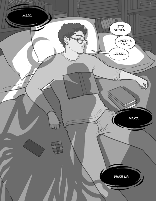 I really wanted to draw a missing scene set sometime before Steven becomes aware of Khonshu and Marc. #StevenGrant #MarcSpector #Khonshu #MoonKnight #moonknightfanart #luckyraeveArt @ tumblr luckyraeve.tumblr.com/post/688535100…
