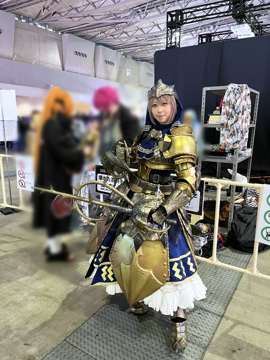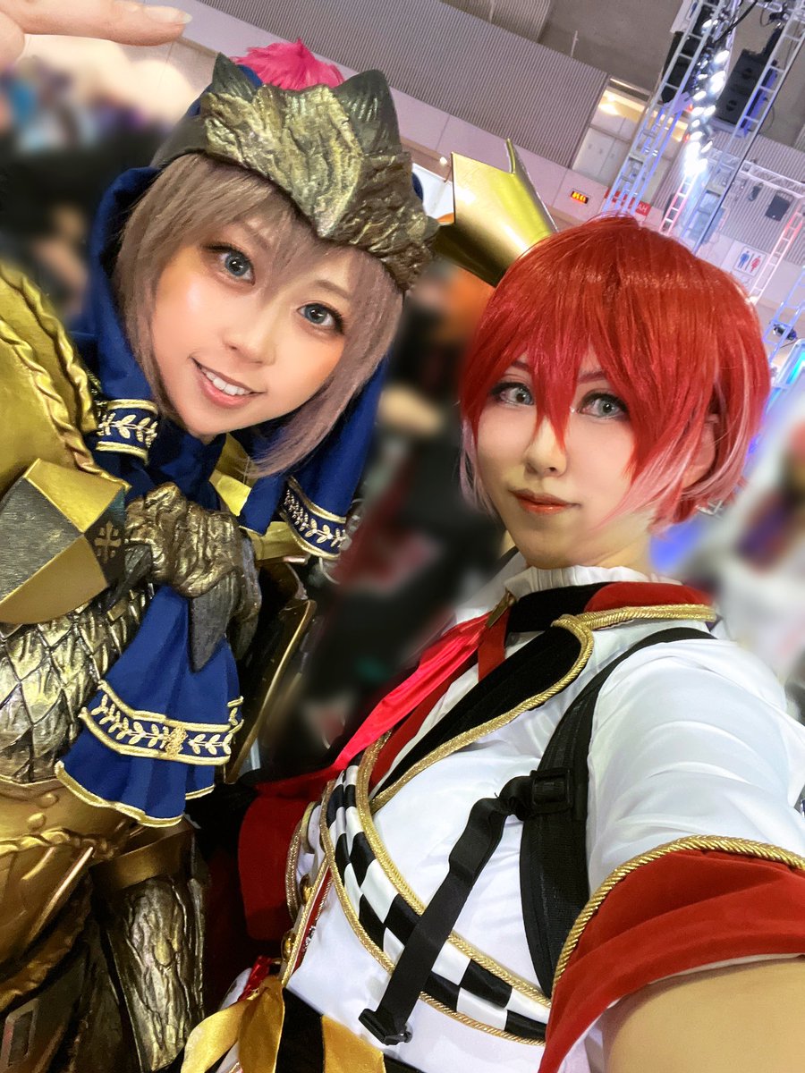 お昼には帰っちゃったから唯一会えて写真撮った友達おねさやさん! 今日も鰤似合ってた🥰🫶 私は昨日の今日で顔が作画崩壊してあれなんで、鰤だけ見てくれ😌 #ワンダーフェスティバル #WF2023S #コスプレ