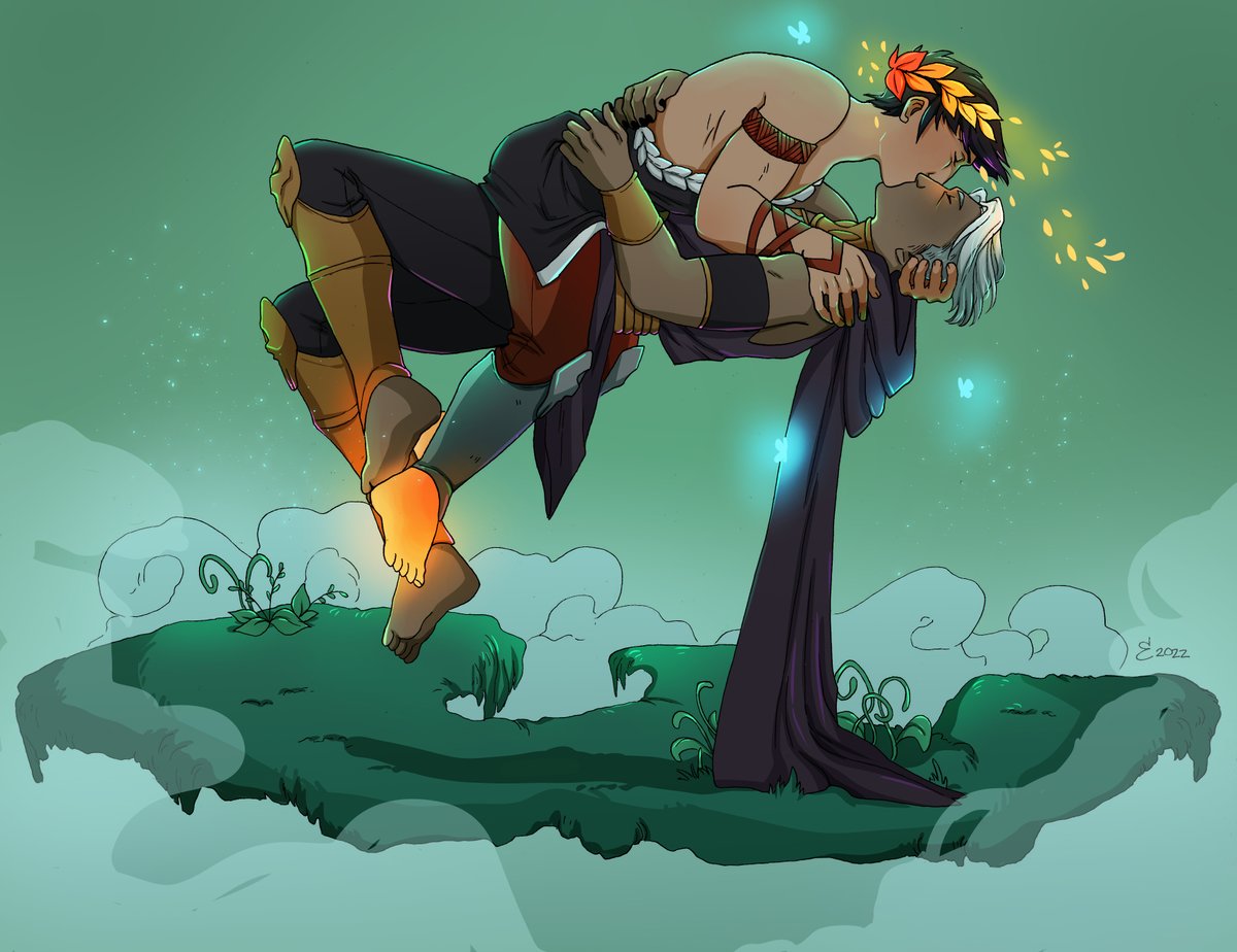 I like the idea that sometimes Than just gets very into a smooch and starts floating awaaaaay #HadesFanart #thanzag