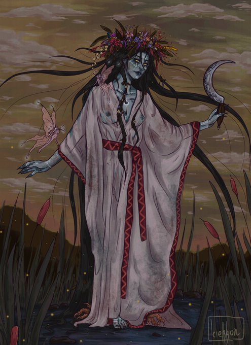 На каждый хэлл у меня начинается рисовальня своей болотной хтони. Это например Чара - сын ведьмы и нечисти. Влюблен в недомавку недополудницу которОе было ниже (Велет) #ArtistOnTwitter #fantasy #draw #digitalart #illustration #myoc #spookymonth #halloween2021