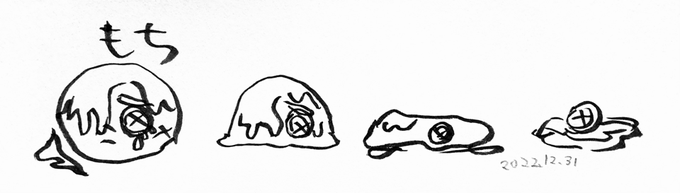 2 9 今年描いた絵でいちばんしょうもないやつ 破輪に轢かれてペラペラになった墓守 22/12/31 18:05