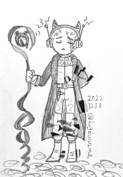 3 13 今年中に隠者のおじさんを描くという目標をギリギリ達成しました 墓守も隠者も好きですので可愛い宇宙墓守の衣装を着てもらいました 2人とも来年もよろしくね #猫の何らかプレイ絵日記 22/12/31 23:56