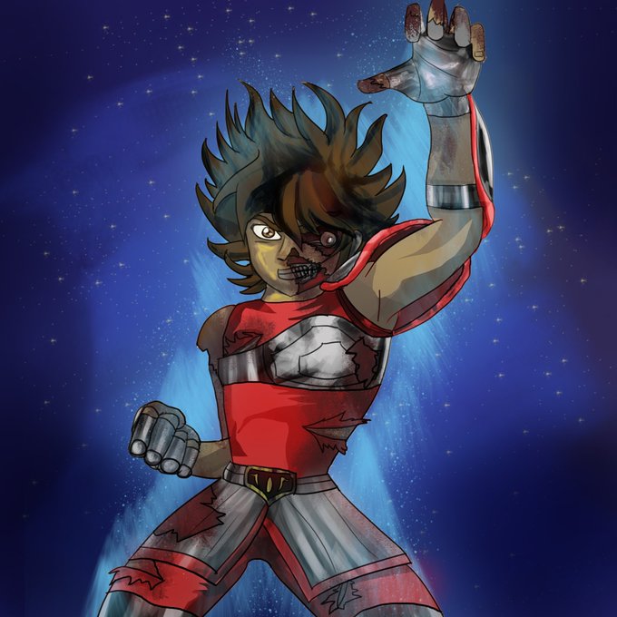 Give me your strength Pegasus! Zombie Seiya. ¡Dame tu fuerza, Pegaso! Seiya Zombie. #digitalart #illustration #drawing #firstattempt #fun #Seiya #Anime #Fanmade #SaintSeiya #CaballerosdelZodiaco #Zombies #Drawloween #inktober #inktober20 #Day27