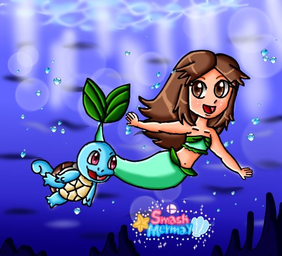 #Pokemon #mermay2021 Eight drawing of the Smash Mermay with Leaf swimming with squirtle at the sea
