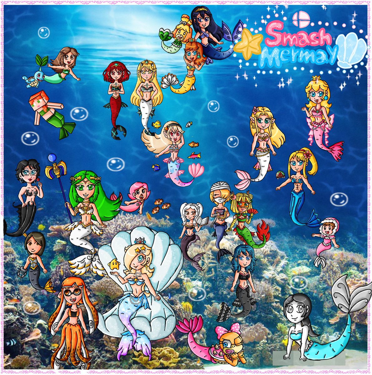 #mermay #Nintendo #SmashUltimate Here is a complete mural with all the Smash girls that I made during the whole of May for Smash Mermay. I loved doing it and it was the first mermay that I really tried to do this project. So I hope you enjoyed it.