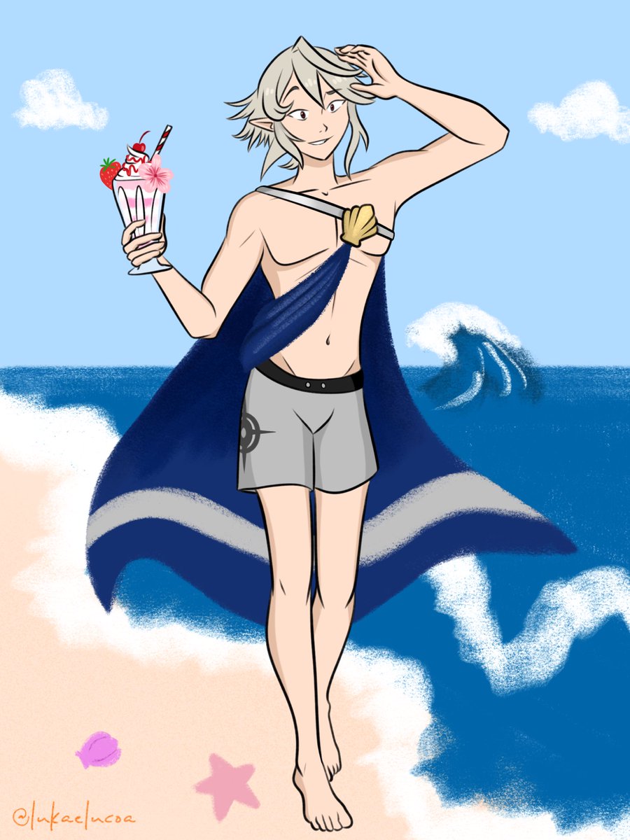 He may not have blackjack and hookers like I promised but it’s summer corn and he’s got a nice cool fruity drink to stay refreshed and dunk enemies with uwu #FireEmblem #Corrin