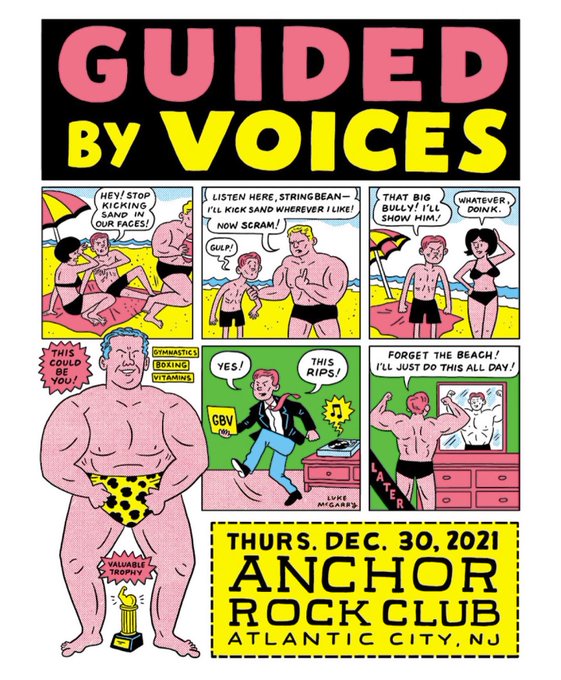 I got to do a concert poster for @_GuidedByVoices but the show got canceled by Covid. Still, beautifully screened limited edition prints exist thanks to @Nakatomi_INC. I love doing show posters, especially when there isn’t a pandemic. #illustration