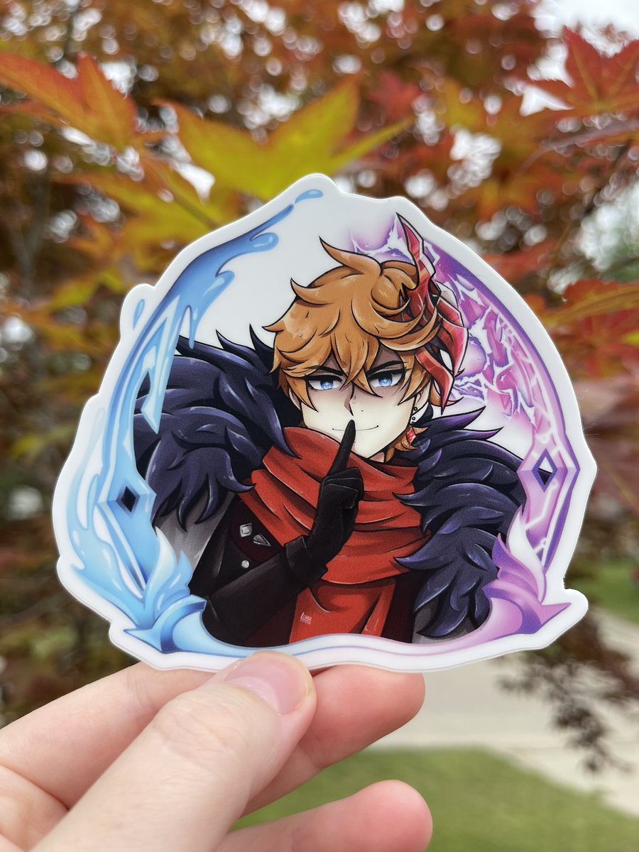 Last night I got done drawing Diluc new skin! I have a few more stickers I’m working on as well :3 might open preorders once done. #DilucFanart #Genshinlmpact