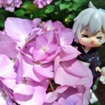 推しは🍶あの後二日酔い三日酔い、してないか気になりますが、アーカイブ残留感謝🤭 酷暑の月曜日、 おはようございます(^_^)☀☀☀ 🤍紫陽花の陰からこんにちはする和まふくん🤍 (植物園シリーズ) #まふあーと