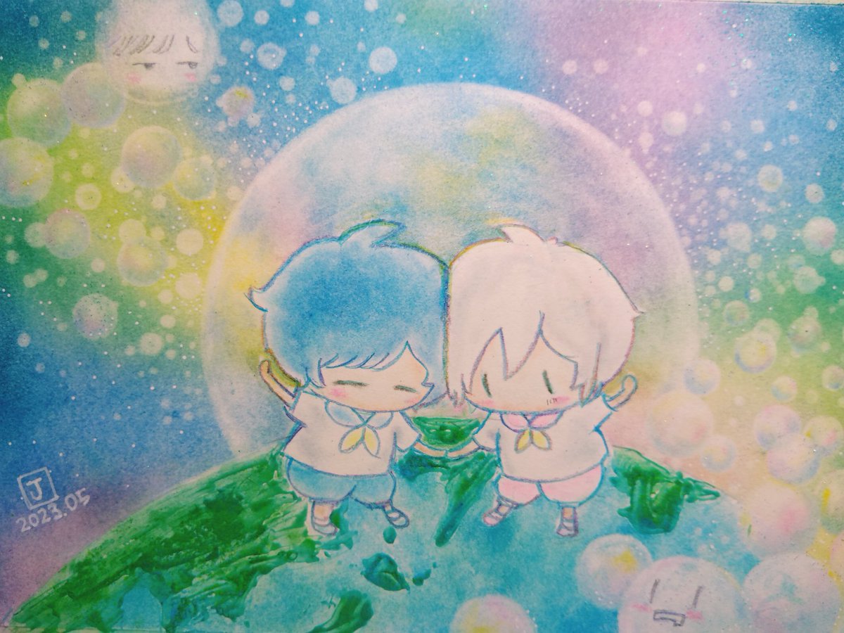 29 216 「絶対よい子のエトセトラ」 ♫ま〜んまるいせかいだもん♫ #まふあーと #そらるの絵 #アナログ絵 #パステル画 23/05/21 17:04