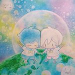【ひき旅〜夢想〜】 夜桜見物に出掛けたそらまふ。 月がとっても青いから遠回りして帰る道すがらに彗星列車と遭遇したらいいな。 という妄想絵ですw ☝タップ推奨♡ #まふあーと #そらるの絵 #アナログ絵 #アクリル透明水彩