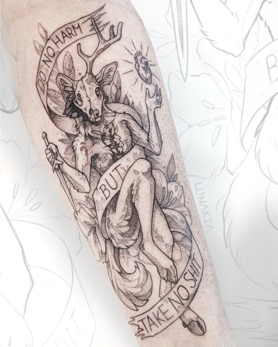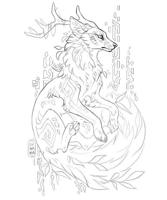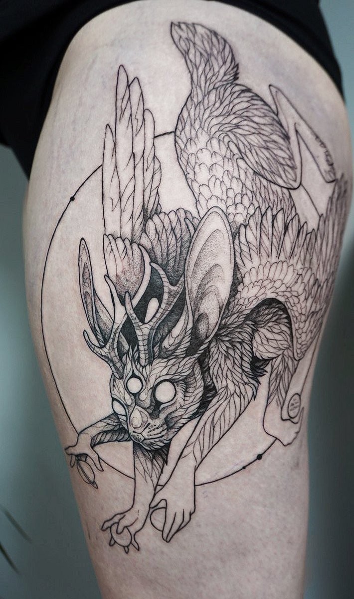 Wolpertinger, first session, 4h so far :D More clean and detailed than usual 🖤🌿