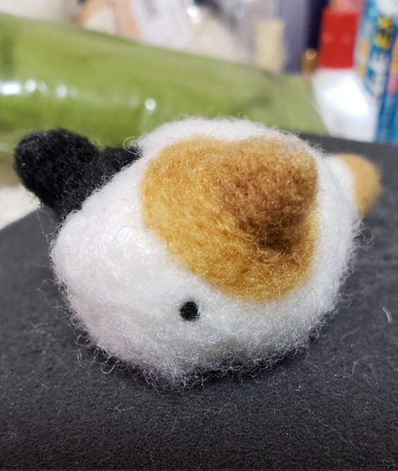 #ねこの日 #スーパー猫の日 #猫 #これを猫と言い張る勇気 #羊毛フェルト #猫? 増えたなあ、猫? いや、猫と断言する勇気はないので疑問計です(;^∀^) それでも、何か気に入ってるこのフォーム。 #誰かに刺さればそれでいい