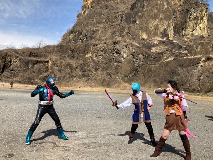 【コスプレネタ】 ヒーロー大戦風 仮面ライダー『出たな!ショッカー!(ん?ショッカーとはちがうのか?)』 アスナ&メルト『こっちには行かせないぞ!ドルイドン!(新種のドルイドンかな?)』』 ↓続く #岩船山 #コスナビ #コスプレ